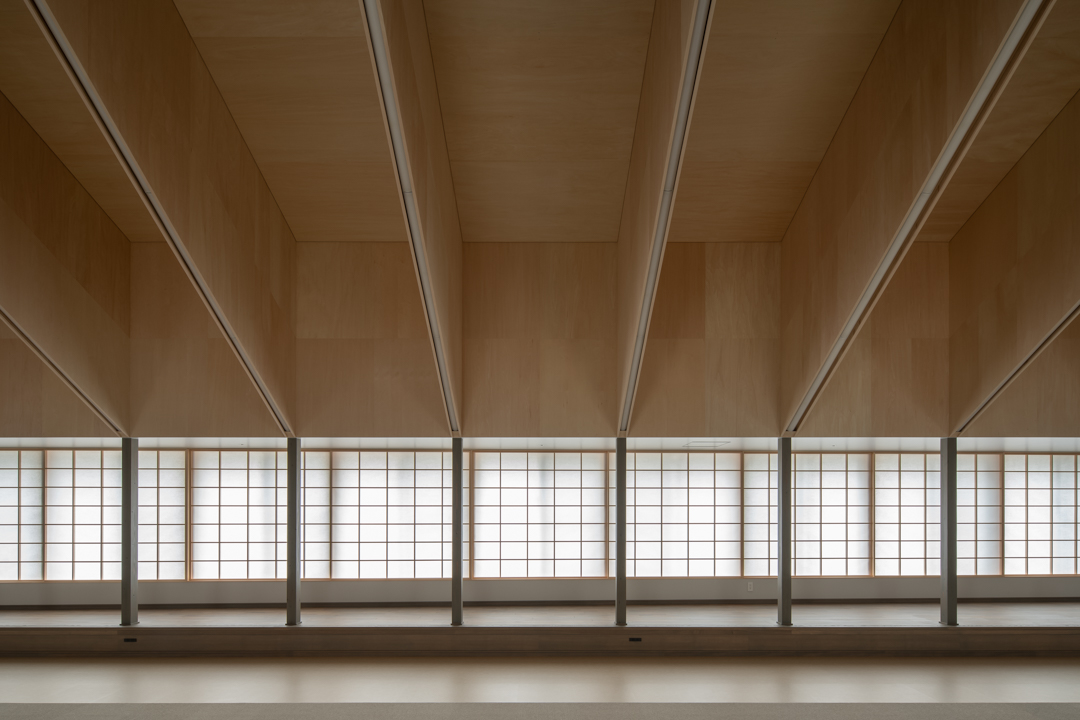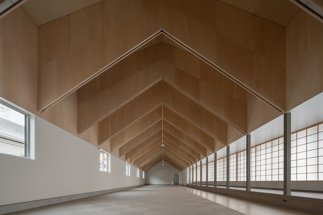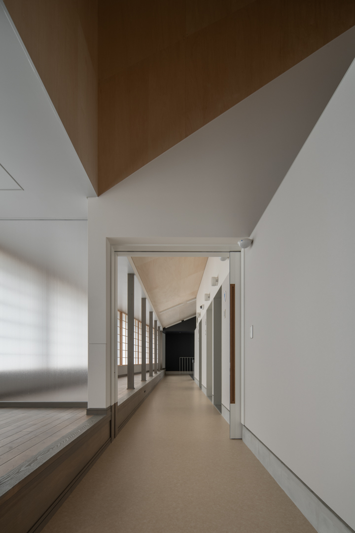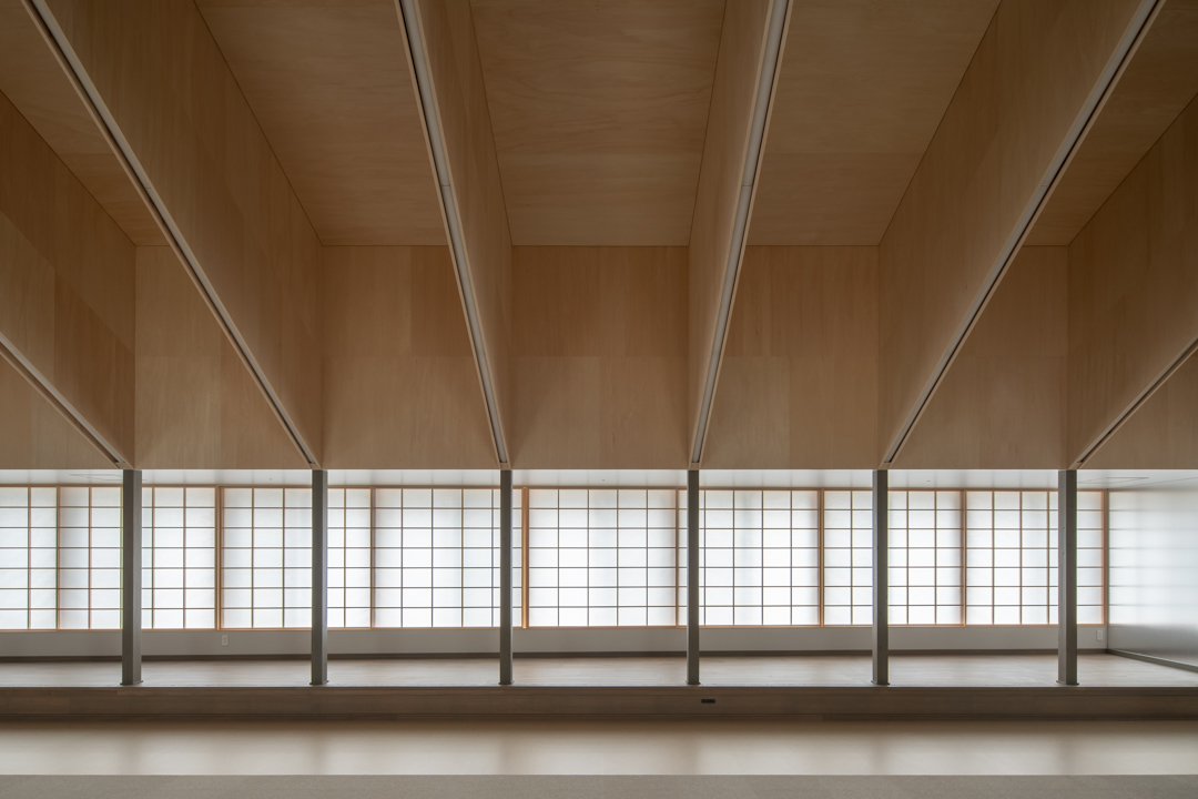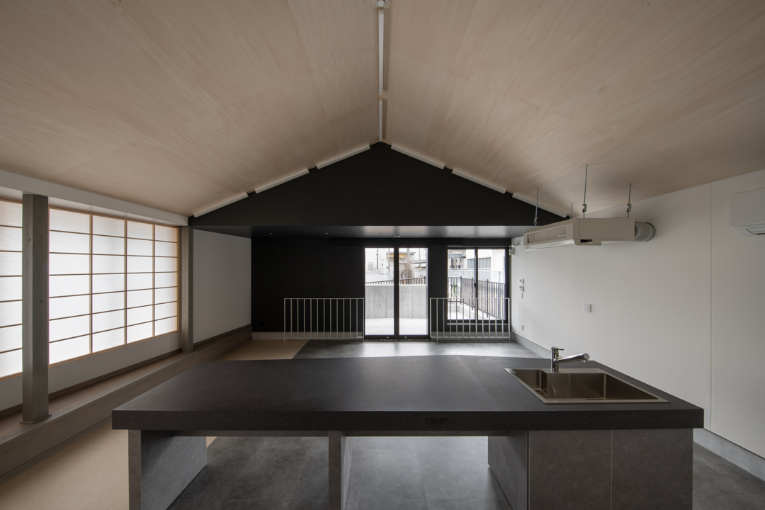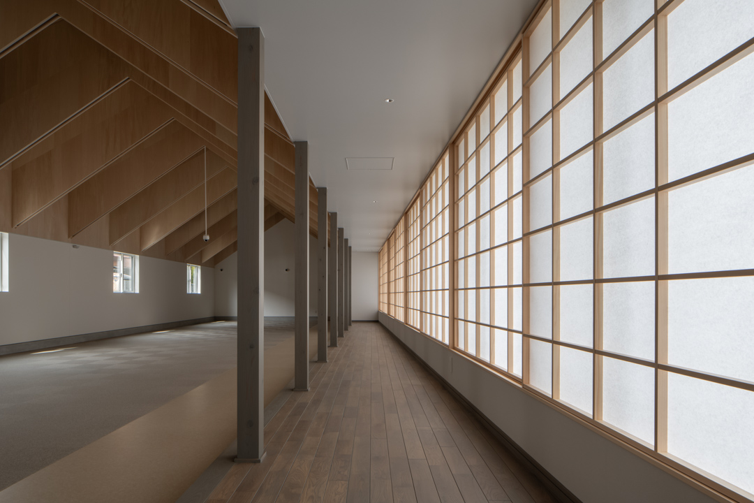そしてこのバッファーゾーンは、このオフィスとまちの関係をつなぐものでもある。少し地面から浮かせ、高さを抑えることで軽やかさを演出し、さらに連窓を設けることで、少し様子がうかがえるようにし、まちに対する圧迫感を減少させた。書類管理という業務内容からも、あまりオフィスを開くことが望まれておらず、従来だと周囲の住人からすると少し不安感を醸し出してしまいがちだが、この小上がりの提案により、その不安感を払拭する計画とした。