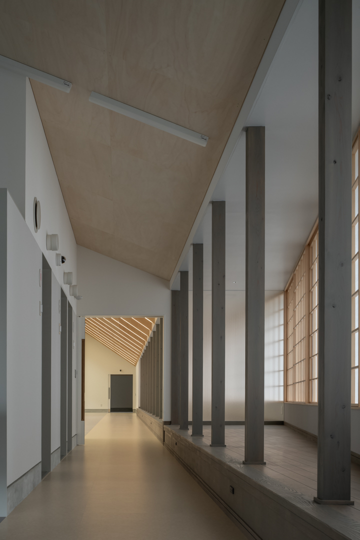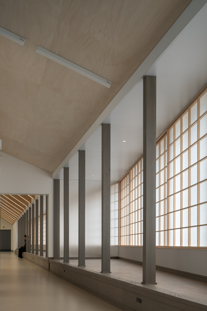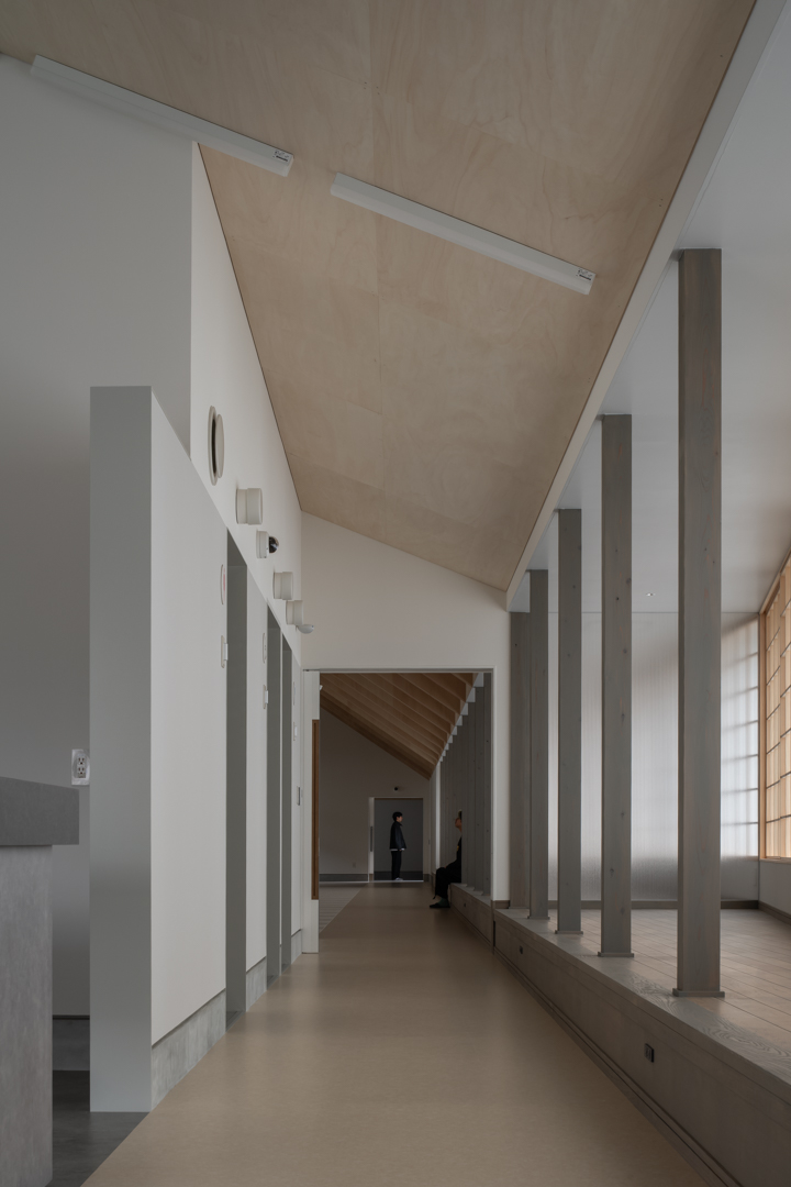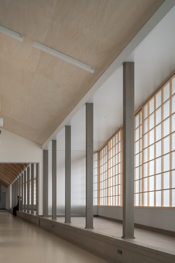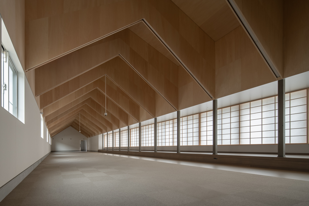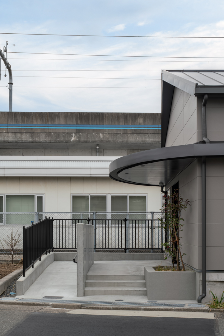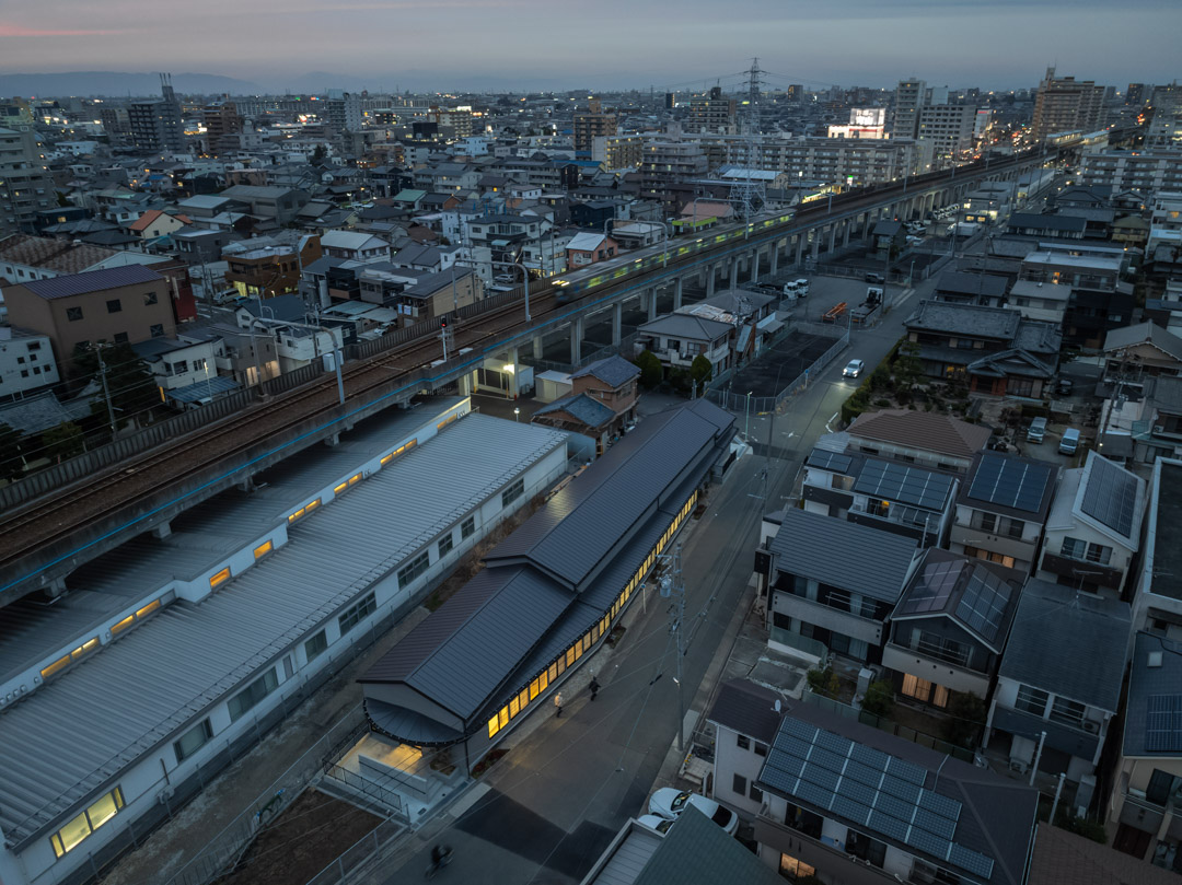 そしてこのバッファーゾーンは、このオフィスとまちの関係をつなぐものでもある。少し地面から浮かせ、高さを抑えることで軽やかさを演出し、さらに連窓を設けることで、少し様子がうかがえるようにし、まちに対する圧迫感を減少させた。書類管理という業務内容からも、あまりオフィスを開くことが望まれておらず、従来だと周囲の住人からすると少し不安感を醸し出してしまいがちだが、この小上がりの提案により、その不安感を払拭する計画とした。