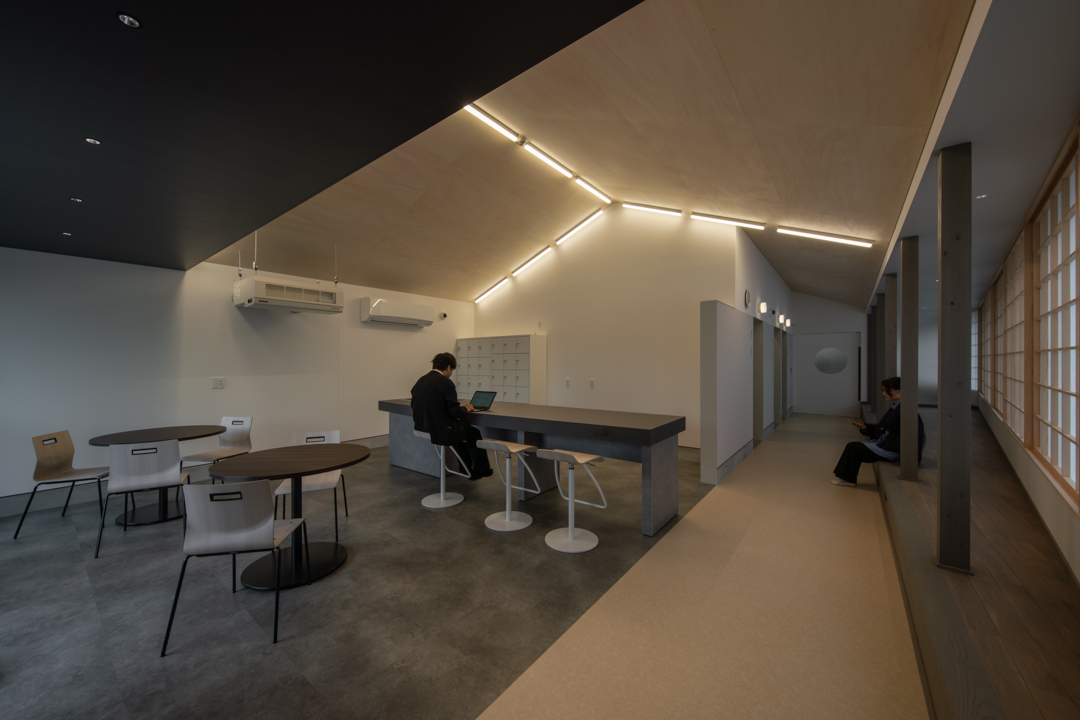用途の定まっていない小上がりを設けることで、執務エリアの使い方の幅を広げた。オフィス部分での小上がりでは、隣に座って簡易な打合せを行ったり、休憩室に行くまでではないちょっとした休憩をしたりすることが出来る。 休憩室部分では、机に座らず寝転がったり、あぐらを書いたりと休憩の仕方の幅が広げられる。このように使い方や行動を制限せずに自由な使い方が出来る場は働く人にとってのバッファーゾーンとなる。